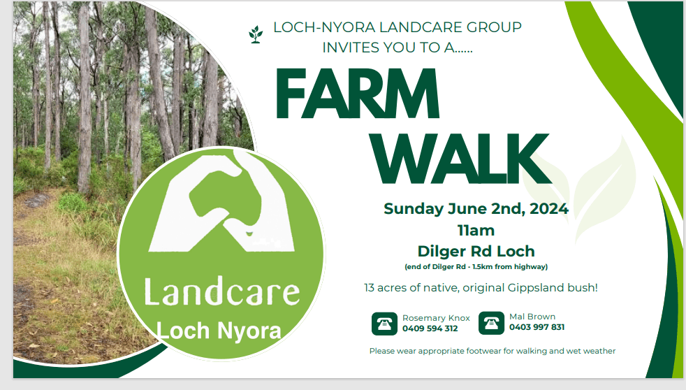 The South Gippsland Landcare Network, of which Loch Nyora Landcare Group is a member, provides information and events you may find interesting. The website link is https://www.sgln.net.au.
